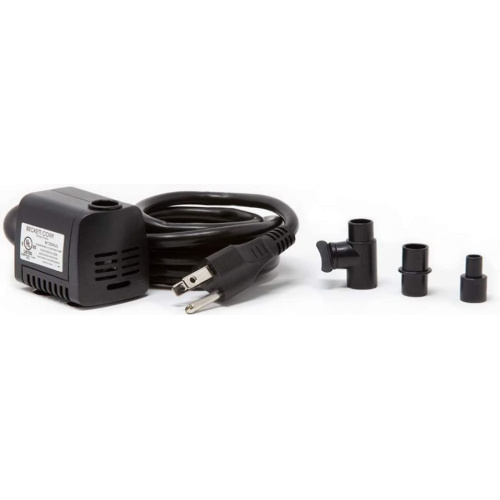 This Beckett Fountain and Statuary Water Pump is ideal for small water features and piped statues. Its low profile, submersible design, and quiet operation make this pump a must for your tabletop and outdoor fountains, aquariums, statuary, or small water displays. Four suction cups on the base keep the unit secure in your aquarium or fountain, and the items plastic housing offers corrosion resistance. Adapters for tubing are included, and the outlet has a flow adjuster knob for added versatility. Alter the water output to your liking by simply twisting this knob. Add moving water to your favorite container garden or power a small fountain with this Fountain and Statuary Pump. The wet-rotor technology provides energy efficiency making the pump. A power cord is included. This pond pump is backed by a limited manufacturer warranty.