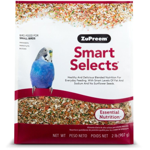 ZuPreem Smart Selects provides healthy and delicious blended nutrition for everyday feeding for Parakeets, Budgies, Parrotlets and other small birds that prefer this food size.